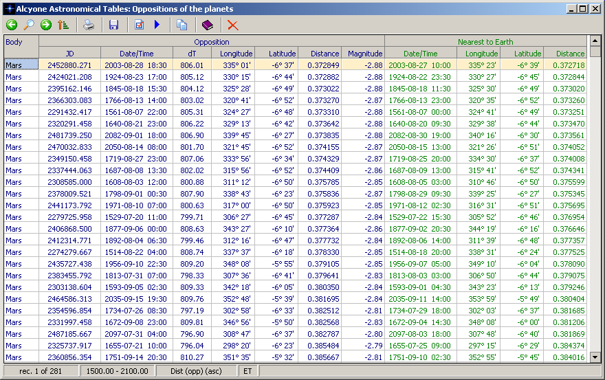 Screenshot: Oppositions of Mars 1500-2100